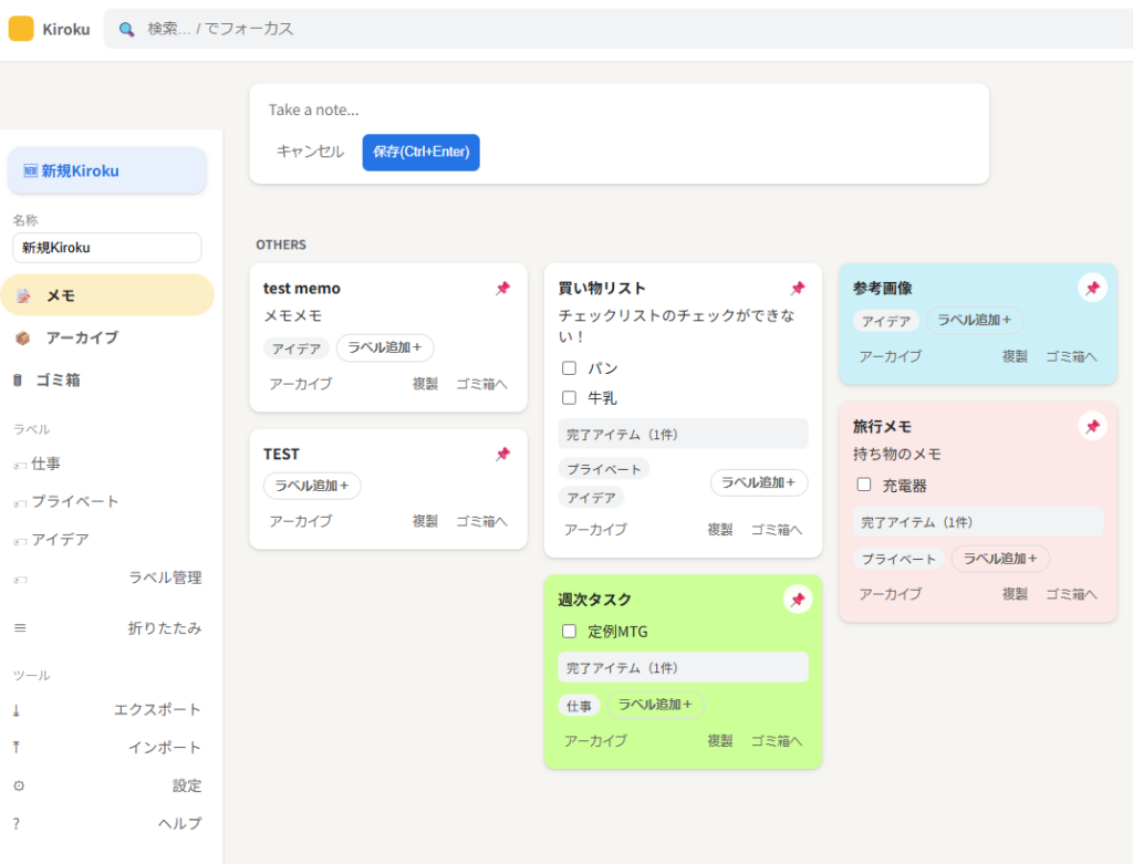 そんな人に向いているのが、ブラウザー上で動くメモアプリ「Kiroku」です。
